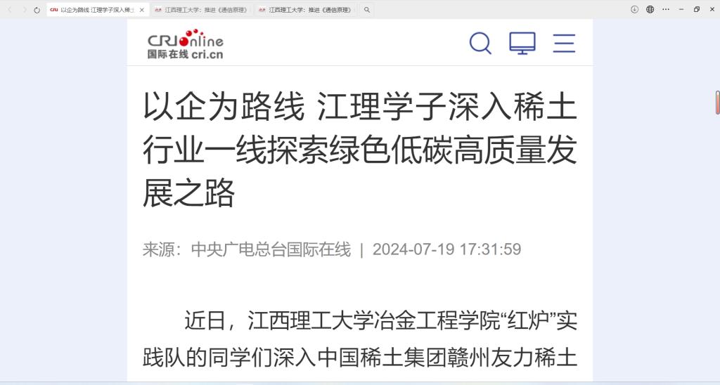 “红炉”实践队的同学们深入中国稀土集团赣州友力稀土科技开发有限公司、晨光稀土新材料有限公司,通过走访调研、校友访谈、一线学习等方式,结合冶金工程专业、新能源科学与工程专业特色,深入产业一线,产学融合,围绕绿色发展、产线升级,探索稀土企业的绿色低碳高质量发展之路。