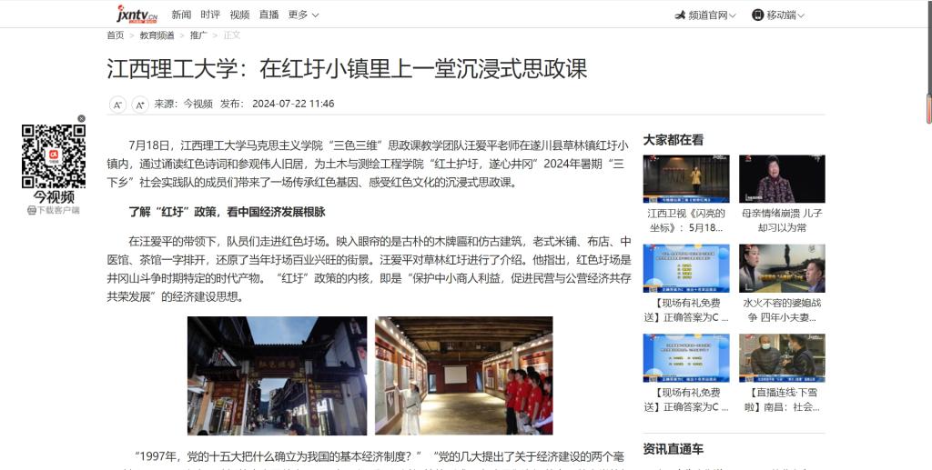 “红土护圩,遂心井冈”2024年暑期“三下乡”社会实践队的成员们带来了一场传承红色基因、感受红色文化的沉浸式思政课。