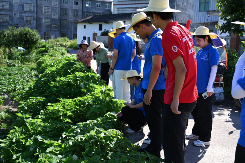 ▲讲解员向实践队员介绍苎麻