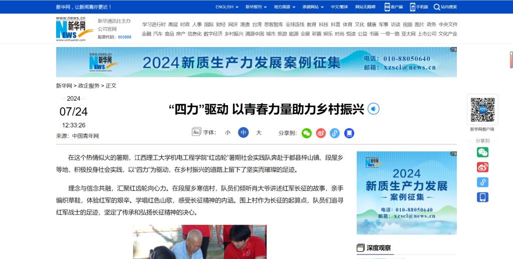 “红齿轮”暑期社会实践队奔赴于都县梓山镇、段屋乡等地,积极投身社会实践,以“四力”为驱动,在乡村振兴的道路上留下了坚实而璀璨的足迹。