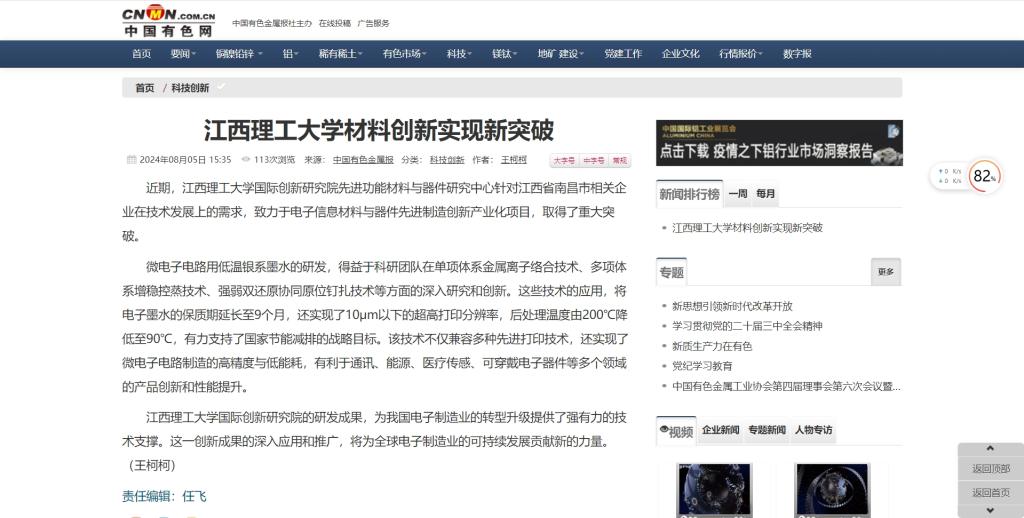 《中国有色网》:大发娱乐 材料创新实现新突破