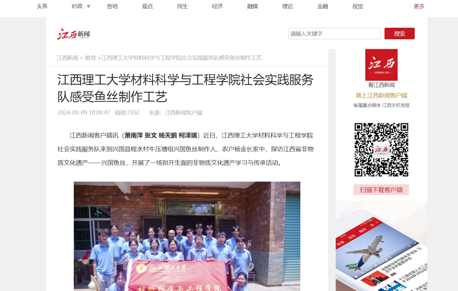 参与此次活动的该校材科233班学生王银雪表示:“这次‘三下乡’活动,通过制作兴国鱼丝,我感觉这是一次与兴国县非遗技艺的亲密接触,制作兴国鱼丝的过程是繁琐的,也是精细的,每一个环节都蕴含着深厚的文化底蕴。兴国鱼丝不仅仅是食物,更是一种文化的象征,承载着家乡的味道。”
