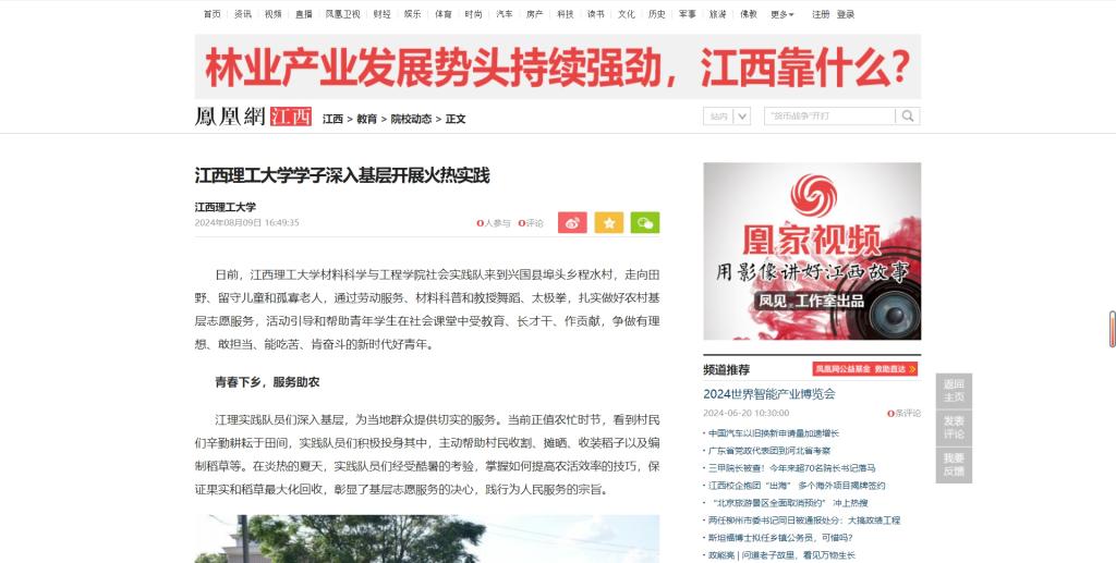 社会实践队来到兴国县埠头乡程水村,走向田野、留守儿童和孤寡老人,通过劳动服务、材料科普和教授舞蹈、太极拳,扎实做好农村基层志愿服务,活动引导和帮助青年学生在社会课堂中受教育、长才干、作贡献,争做有理想、敢担当、能吃苦、肯奋斗的新时代好青年。