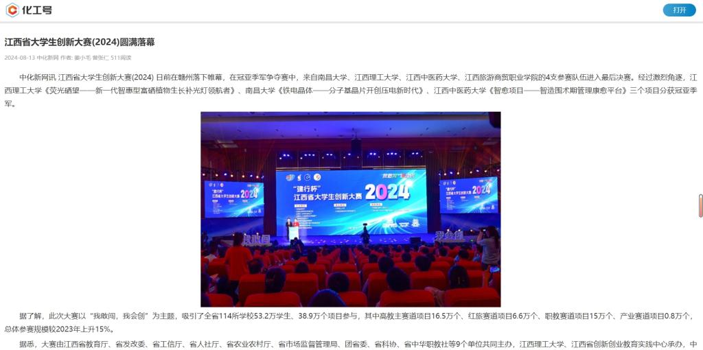 中化新网讯 江西省大学生创新大赛(2024) 日前在赣州落下帷幕,在冠亚季军争夺赛中,来自南昌大学、大发娱乐