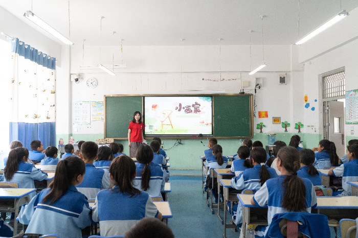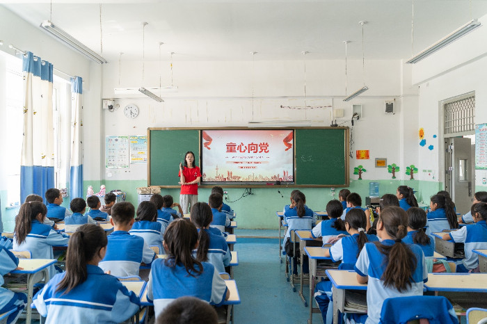 传承红色基因,赓续红色精神。在教学中实践队员们结合红色研学,开设爱国主义教育、红色文化等思政课程。在“爱国主义教育”课堂上,实践队员们巧妙地利用江西的红色资源点与庄严的爱国主义教育基地。通过讲述生动且深刻的党史故事,以及革命英烈们不惧艰难、勇于献身的壮烈事迹,使得红色的火种在昆仑佳苑小学的每位学生心中熊熊燃烧,绽放出夺目的光芒。