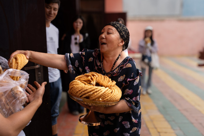 在柯尔克孜族居民家中,实践队员们了解了传统打馕技艺。通过与当地居民的友好交流,加深了对当地文化的理解。在轻松愉悦的氛围中,队员们交流了日常生活,分享了各自的生活经历。