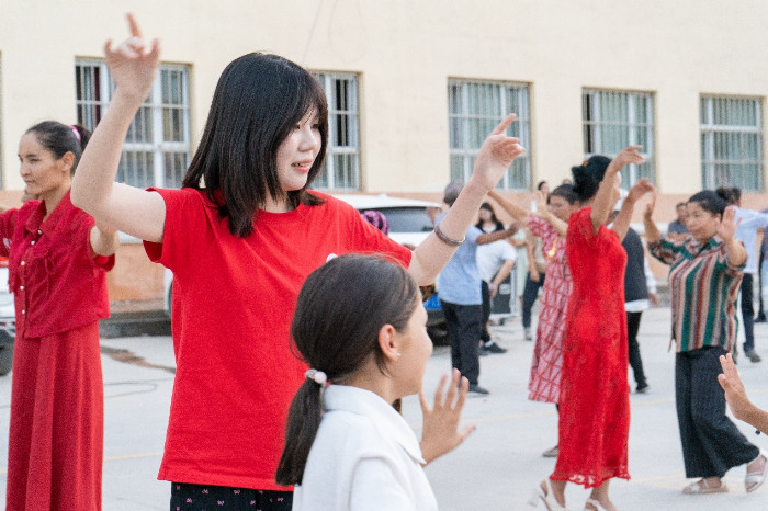 一踏入恰尔隆这片被自然与人文共同宠爱的土地,实践团的成员们仿佛穿越了时空隧道,瞬间被浓郁的民族风情紧紧拥抱。为更深入了解和体验当地文化,实践队员们于“百日文化”大舞台中感受多民族文化交融。据了解,百日广场文化活动是“文化润疆”工作内容,是多年来打造的群众文化品牌,是群众娱乐、自我展示的舞台,是促进群众文化繁荣发展、满足各族群众美好精神文化需求的有效载体。