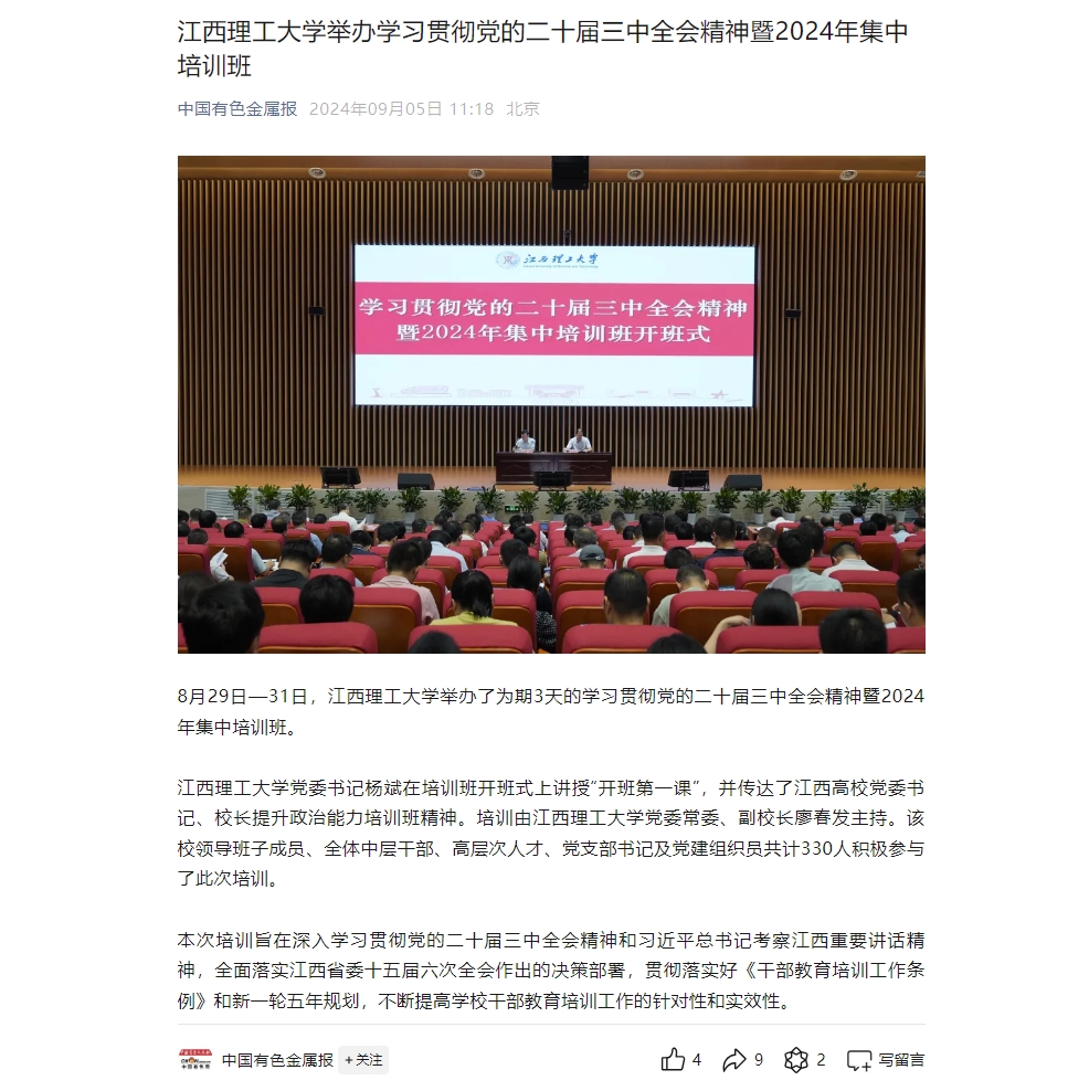杨斌表示,及时学习并贯彻落实党的二十届三中全会精神和江西高校党委书记、校长提升政治能力培训班精神,能有效提升全体干部的政治能力和业务能力,开拓视野,凝聚共识。