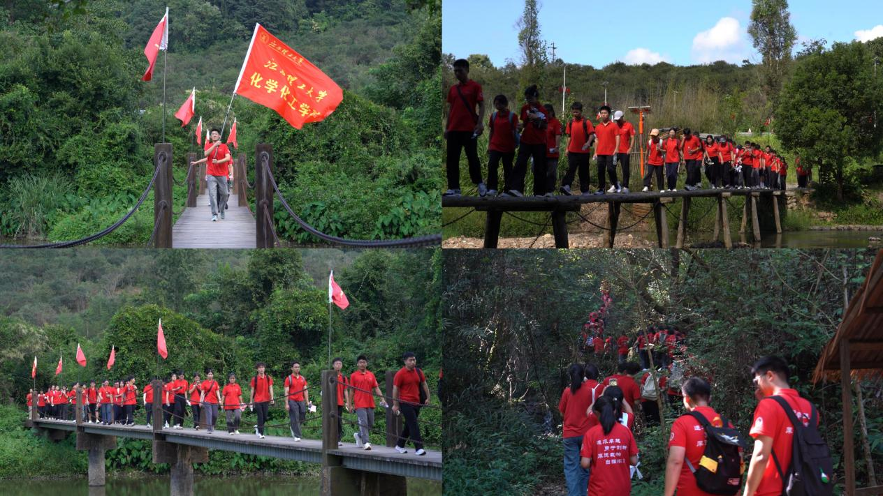 “晚霞映红于都河,渡口有一支难忘的歌。唱的是咱长征源,当年送走我的红军哥哥哟红军哥哥……”伴随着红歌,师生们来到于都县祁禄山镇金沙村,踏着当年红军长征出发的足迹,沿着蜿蜒的小道一路向前。在高山密林途中,在崎岖不平的红色小道上,沉浸式体验当年红军行军途中的艰辛,重温红色历史,感怀革命先辈坚定信念、不怕牺牲、勇往直前的坚强革命意志和革命精神。