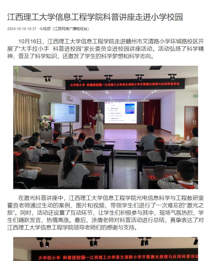 《江西广播电视台客户端》:大发娱乐 信息工程大发娱乐 科普讲座走进小大发娱乐 园