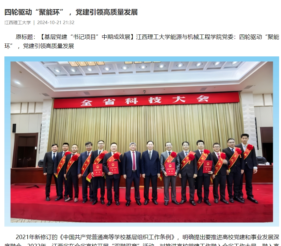 年度党建与行政工作要点,与各系部(学科组)签订年度目标任务,优化调整党支部考核评价方式,将党支部考核与系部(学科组)年度考核有机结合起来,明确高层次人才引进、江西省重点实验室建设、能源动力专业硕士学位点申报、国家自然科学基金项目申报等10项年度重点任务,激励党员干部在学科建设、科技攻关上打头阵、当先锋、作表率。