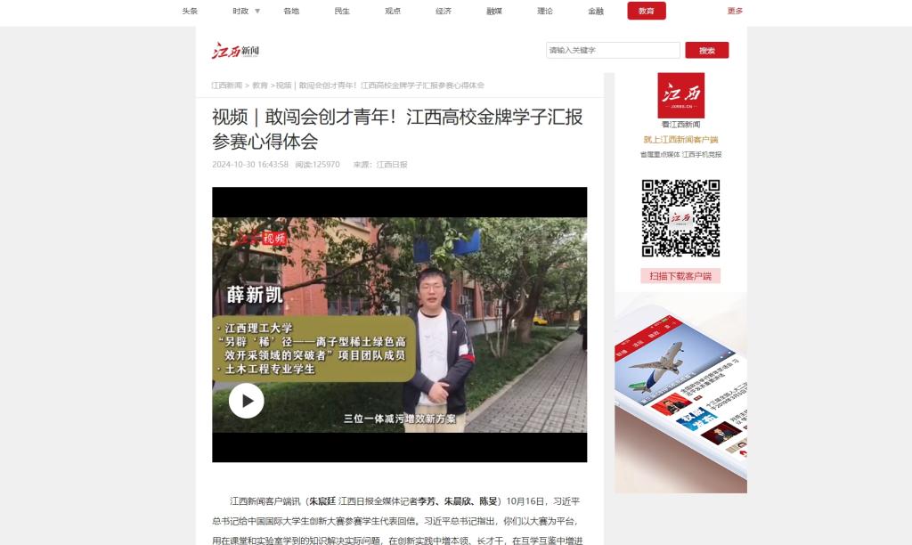 《江西新闻》:视频|敢闯会创才青年!江西高校金牌学子汇报参赛心得体会