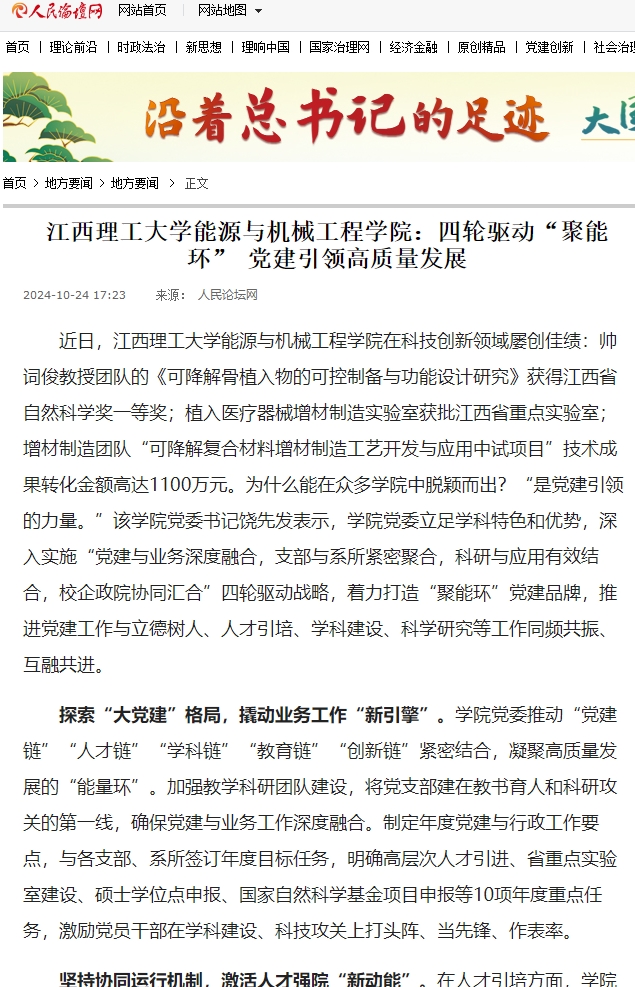 党委立足学科特色和优势,深入实施“党建与业务深度融合,支部与系所紧密聚合,科研与应用有效结合,校企政院协同汇合”四轮驱动战略,着力打造“聚能环”党建品牌,推进党建工作与立德树人、人才引培、学科建设、科学研究等工作同频共振、互融共进。