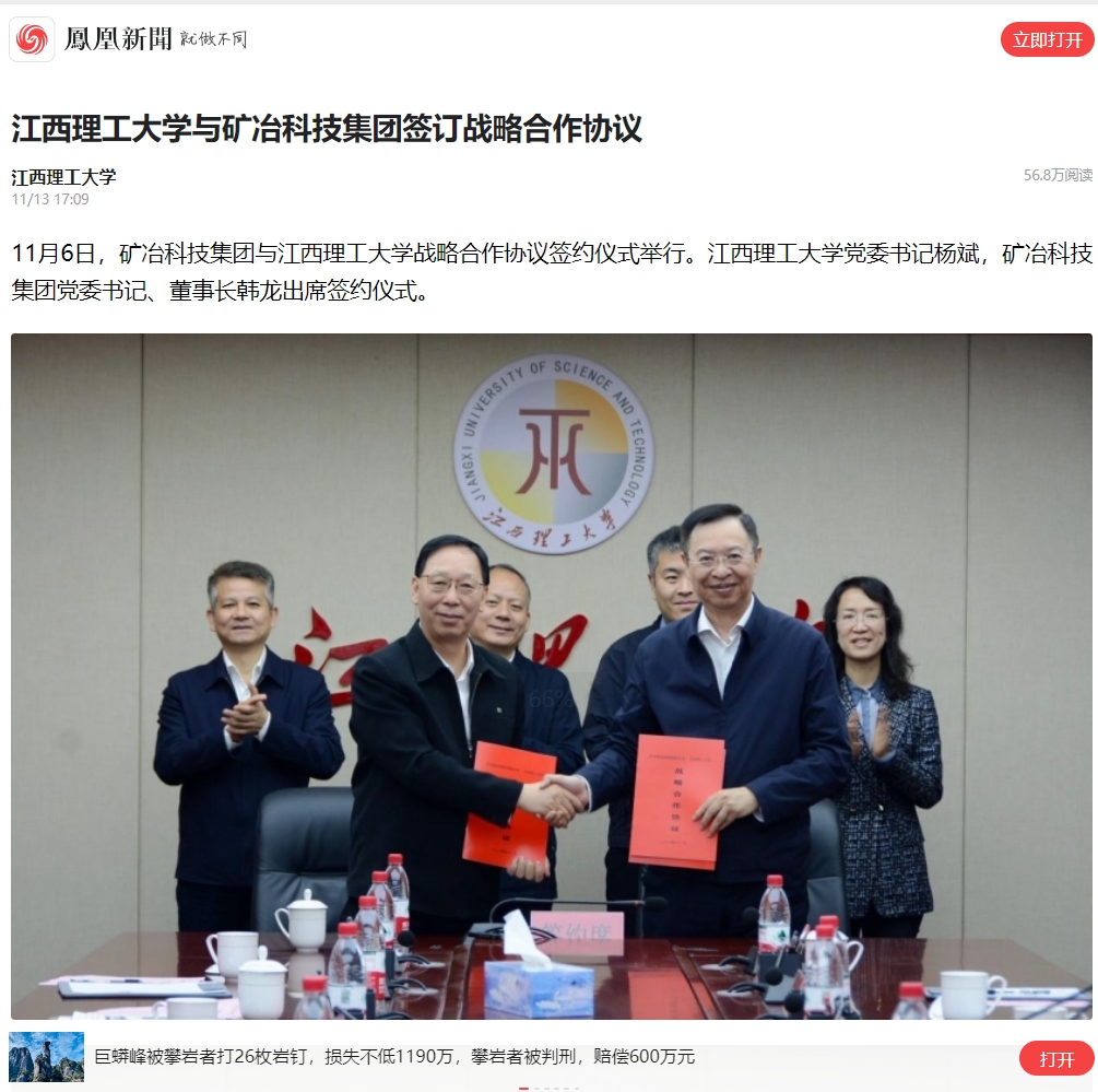 的学科特色与矿冶科技集团主要业务板块高度吻合。长期以来,双方扎实推进校企合作,在科技合作、人才培养等方面长期保持着紧密联系,此次合作是双方在新发展阶段谋求更大合作的具体行动。他对双方的合作提出三点希望:一是积极争取政策支持,打造合作样板;二是加快整合资源优势,增强合作动力;三是不断完善协同机制,保障合作顺畅。相信在双方的共同努力下,此次合作将会取得更加丰硕的成果,成为校企合作与产教融合的新典范与新样板。