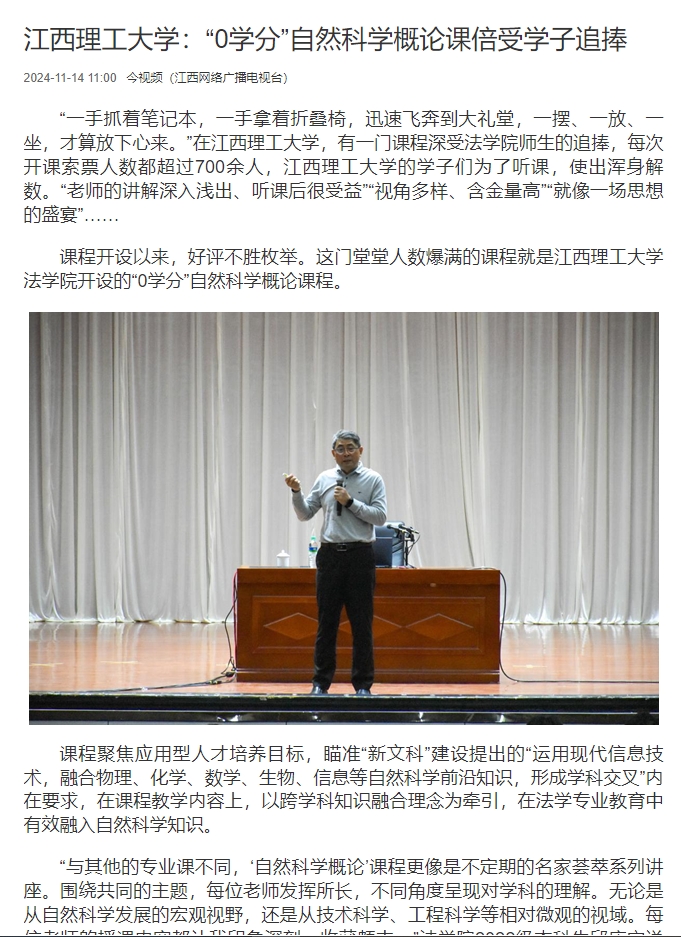 开设的“0学分”自然科学概论课程。
