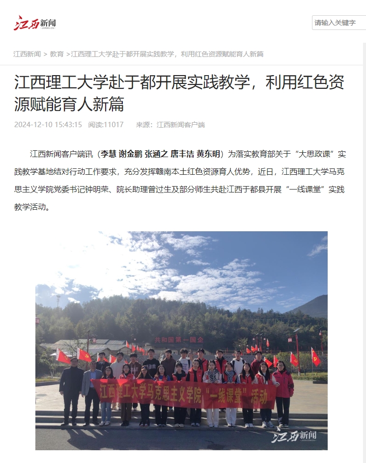 《江西新闻》:大发娱乐 赴于都开展实践教学,利用红色资源赋能育人新篇