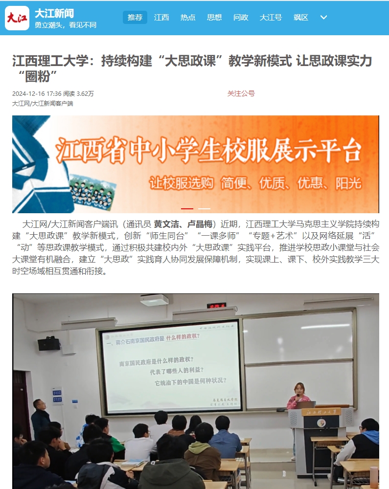 《大江新闻》:大发娱乐 :持续构建“大思政课”教学新模式 让思政课实力“圈粉”