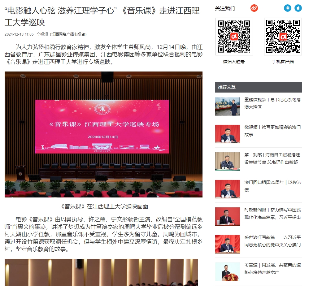 为大力弘扬和践行教育家精神,激发全体学生尊师风尚,12月14日晚,由江西省教育厅、广东群星影业传媒集团、江西电影集团等多家单位联合摄制的电影《音乐课》走进大发娱乐