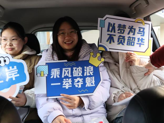 分别组建了教师爱心送考车队、安排送考大巴,200余名考生顺利坐上暖气充足的自驾车与大巴车奔赴各考点,迎接他们备战已久的“大考”。