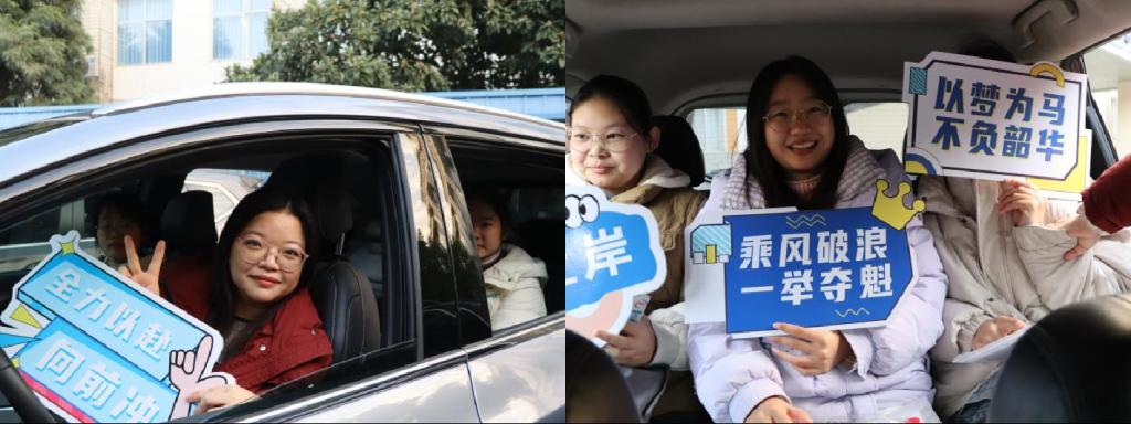分别组建了教师爱心送考车队、安排送考大巴,共计200余名考生顺利坐上暖气充足的自驾车与大巴车奔赴各考点,迎接他们备战已久的“大考”。
