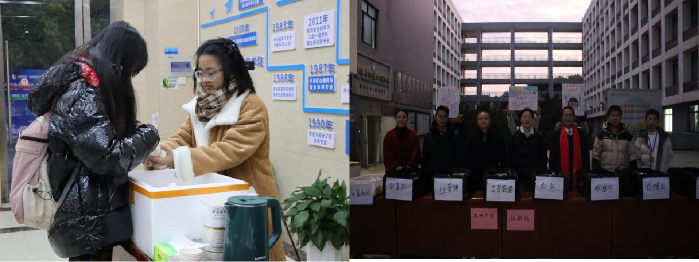 师生为考研学子发放爱心早餐