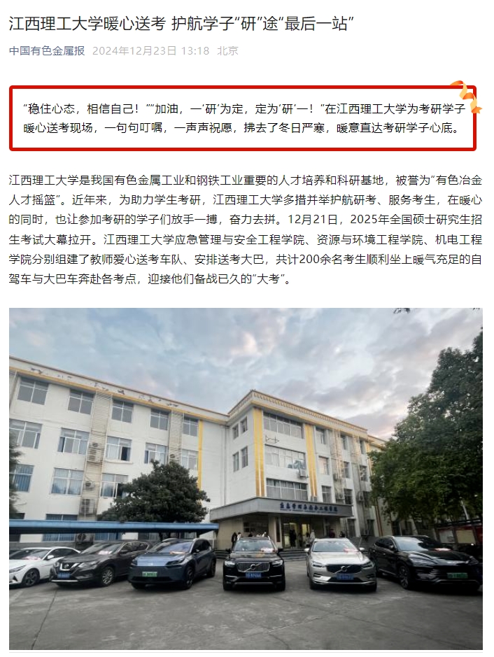 当一辆辆送考车辆缓缓启动时,考研学子背负着梦想和希望,踏上了通向成功的征程。无声的出征号角响起,鼓动着每个考研学子的心。车队缓缓启动,送考途中,自驾送考的老师与送考大巴皆严格遵守交通规则,把控行车速度,确保安全、准时将考生们送达考场。此外,他们还时刻关注考生们的情绪状态,及时疏导大家的紧张情绪,增强应试信心。