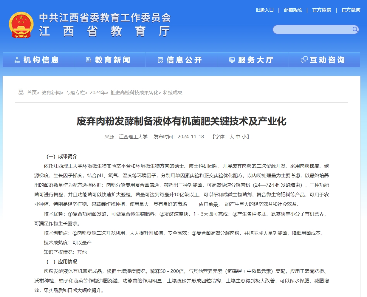 技术优势:①复合功能菌发酵,可做复合微生物肥料;②发酵速度快,1-3天即可完成;③产生各种多肽、氨基酸等小分子有机营养,可满足作物生长需求。