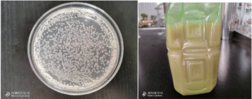 环境微生物实验室平台和环境微生物方向的硕士、博士科研团队,开展废弃肉粉的二次资源开发。采用肉粉梯度、碳源梯度、生长因子梯度,结合pH、氧气、温度等环境因子,分别用单因素实验和正交实验优化配方,以肉粉处理量为主要考虑,以最终培养出的菌落数量作为配方选择依据;肉粉分解专用复合菌筛选,筛选出三种功能菌,可高效快速分解肉粉(24—72小时发酵结束),三种功能菌可进行复配,并且功能菌可以快速扩大繁殖,菌量可达到每毫升10亿级以上,可以研制成微生物菌剂、复合微生物肥料等产品,可用于农业种植,特别是经济作物、果蔬等作物种植,使用量大,具有良好的市场应用前景,能产生巨大的经济效益和社会效益。