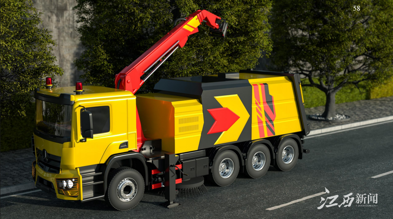 教师团队的指导下,学生深入参与企业实际项目,将课堂所学与行业需求紧密结合。此次获奖的作品《城市绿化养护修剪一体工程车设计》,以“机械风暴”为灵感,融合工业风格与机械元素,通过流畅的线条和独特的功能整合,展现了现代工业美学与实用性的完美结合。其前部设计借鉴了装甲车的坚固性与跑车的流线型,不仅优化了空气动力学性能,还赋予了车辆强烈的视觉冲击力。同时,机械臂与底盘的设计通过形式解构与重组,打破了传统工程车的刻板印象,为城市绿化维护提供了高效、创新的解决方案。