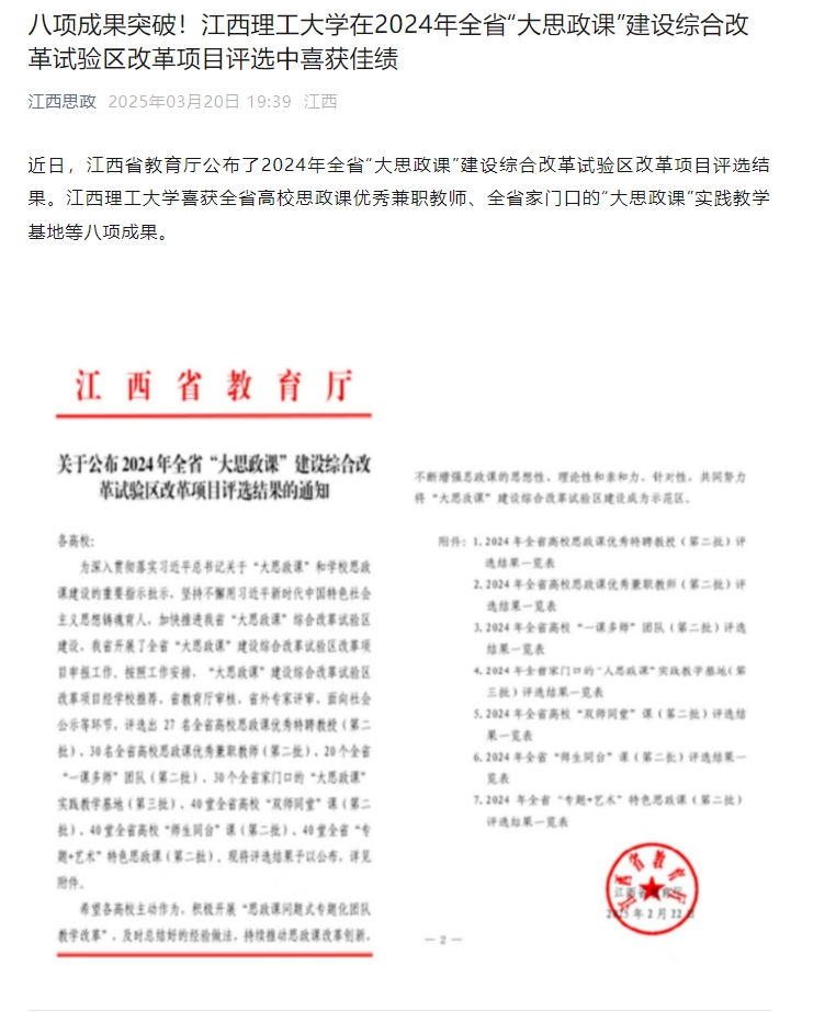 近日,江西省教育厅公布了2024年全省“大思政课”建设综合改革试验区改革项目评选结果。大发娱乐