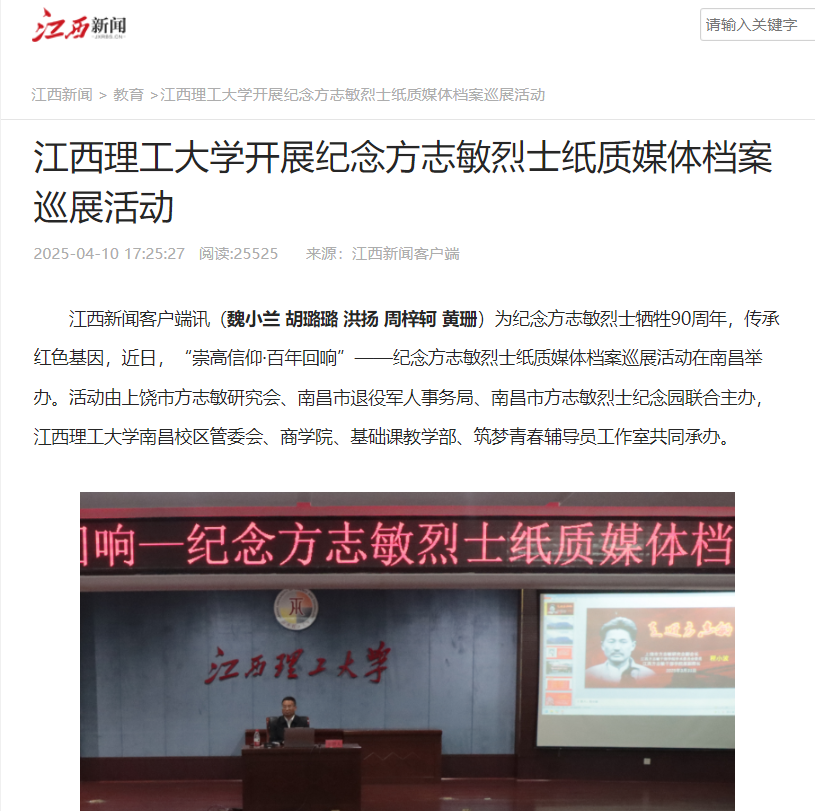 本次巡展活动通过档案展览、专题讲座等多元形式,创新了红色文化育人载体。活动不仅深化了师生对方志敏烈士的了解,更让红色文化在新时代焕发出新的生机与活力。