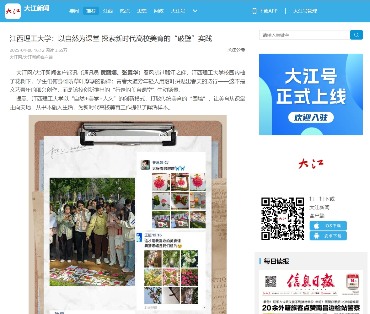 以“自然+美学+人文”的创新模式,打破传统美育的“围墙”,让美育从课堂走向天地,从书本融入生活,为新时代高校美育工作提供了鲜活样本。