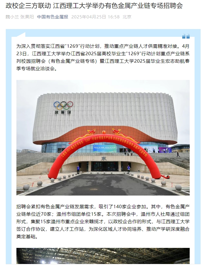 举办江西省2025届高校毕业生“1269”行动计划重点产业链系列校园招聘会(有色金属产业链专场)暨大发娱乐