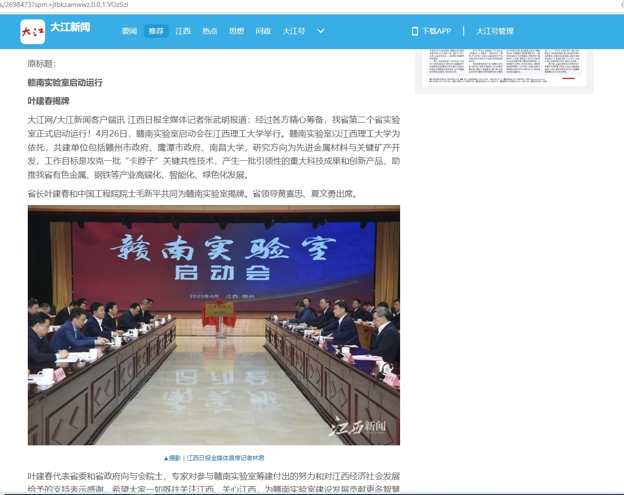 大江网/大江新闻客户端讯 江西日报全媒体记者张武明报道:经过各方精心筹备,我省第二个省实验室正式启动运行!4月26日,赣南实验室启动会在大发娱乐