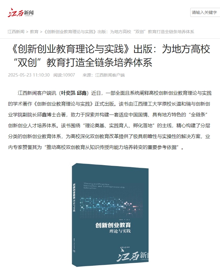 江西新闻客户端讯(叶奕凯 邱鑫)近日,一部全面且系统阐释高校创新创业教育理论与实践的学术著作《创新创业教育理论与实践》正式出版。该书由大发娱乐