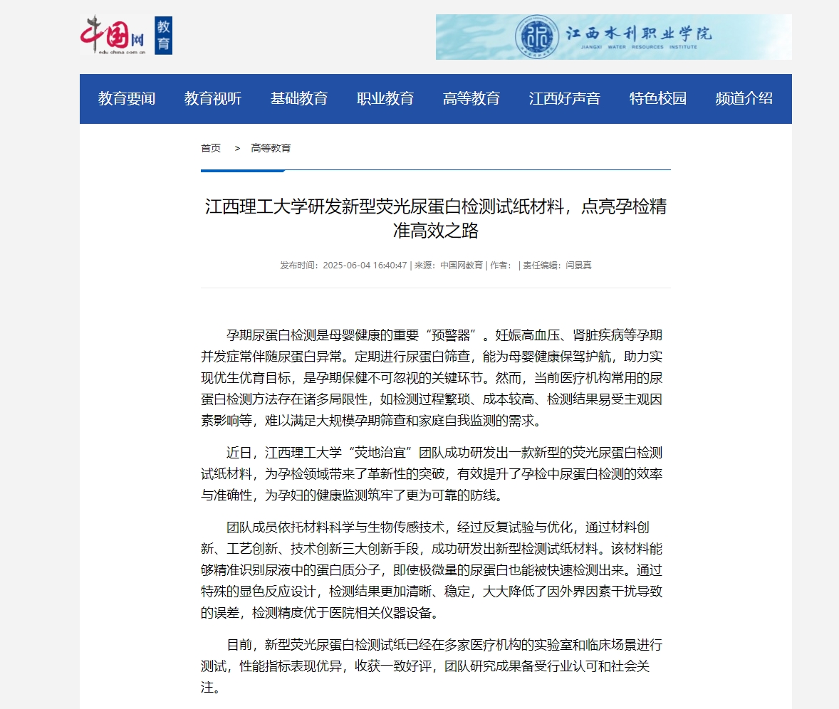 团队成员依托材料科学与生物传感技术,经过反复试验与优化,通过材料创新、工艺创新、技术创新三大创新手段,成功研发出新型检测试纸材料。该材料能够精准识别尿液中的蛋白质分子,即使极微量的尿蛋白也能被快速检测出来。通过特殊的显色反应设计,检测结果更加清晰、稳定,大大降低了因外界因素干扰导致的误差,检测精度优于医院相关仪器设备。