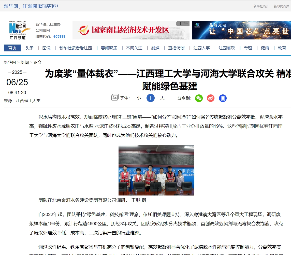 “每一滴净化的废浆,都是我们对绿水青山的承诺。”团队成员薛新凯说。从实验室到山河大地,他们正以科技之笔,绘就绿色基建的壮美画卷。(王鹏、倪婷婷、袁国栋、郑彬)