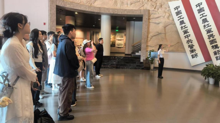 “苏区干部好作风,自带干粮去办公”的悠扬旋律回荡展厅,讲解员用清亮的嗓音唱起兴国山歌,将红色廉政故事融入传统曲调。一曲曲山歌,既是对萧华、陈奇涵等兴国籍革命先辈清廉自律精神的深情讴歌,也让大家在非遗文化魅力中感悟“日着草鞋干革命,夜打灯笼访贫农”的红色革命精神,让清正廉洁的种子在研究生党员心中生根发芽。