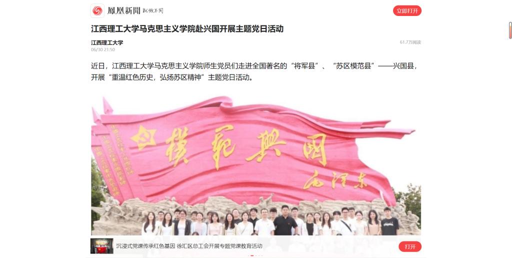 师生党员们走进全国著名的“将军县”、“苏区模范县”——兴国县,开展“重温红色历史,弘扬苏区精神”主题党日活动。