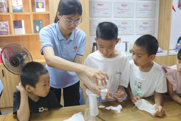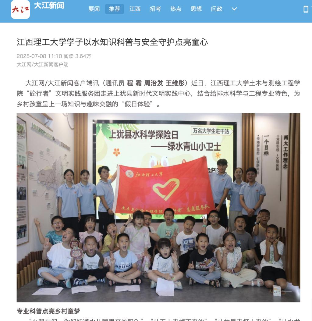 “砼行者”文明实践服务团走进上犹县新时代文明实践中心,结合给排水科学与工程专业特色,为乡村孩童呈上一场知识与趣味交融的“假日体验”。