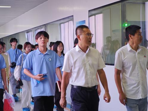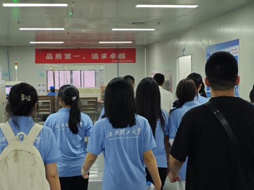 在景旺电子科技(赣州)有限公司的现代化车间里,智能化生产的蓬勃活力扑面而来。灵巧的机械臂精准完成各项操作,高效的AGV小车沿设定路线灵活穿梭,共同构建起一套流畅高效的自动化物流体系。学子们系统观摩了从精密基板制造到多层压合的全套生产工艺流程,直观了解了“数智赋能”给制造业转型升级带来的深刻变革。