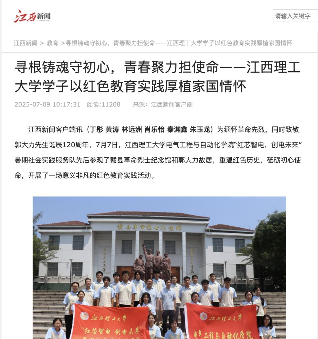 “红芯智电,创电未来”暑期社会实践服务队先后参观了赣县革命烈士纪念馆和郭大力故居,重温红色历史,砥砺初心使命,开展了一场意义非凡的红色教育实践活动。