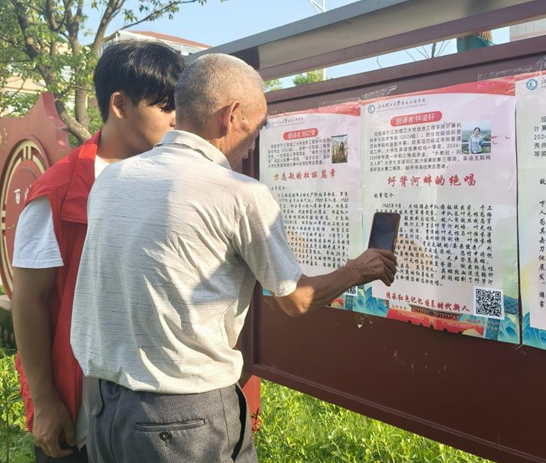 学子开发的“红色地图”小程序,能够实现革命遗址精准定位、图文展示及党史问答功能。课堂巧妙融合多种多媒体技术:以动态图解的形式阐释党旗的象征意义,进行少先队标准队礼的互动教学,在红歌合唱时同步投影历史影像。此外,实践队队员创新制作的“红色故事有声墙”亮相在村庄宣传栏,村民扫码即可收听红色故事。这些多维技术手段,让红色教育深深扎根童心,也走进了寻常百姓的生活。