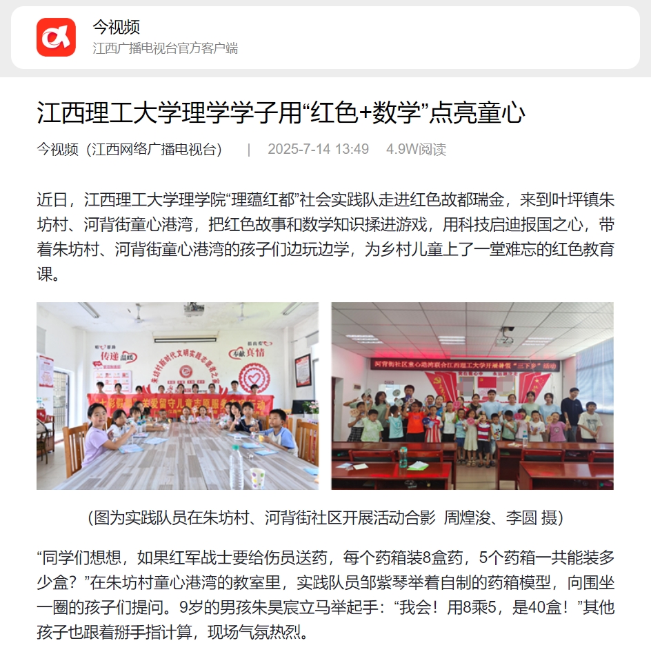 《江西网络广播电视台》:大发娱乐 理学学子用“红色+数学”点亮童心