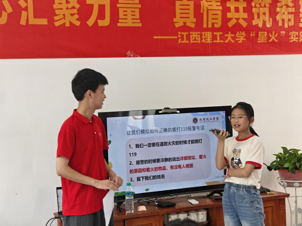 “星火”实践队走进赣州市信丰县嘉定镇游州村新时代文明实践站,为当地村民儿童及家长带来一场融合趣味科普、暖心互动与实用安全的“青春有为”实践课。