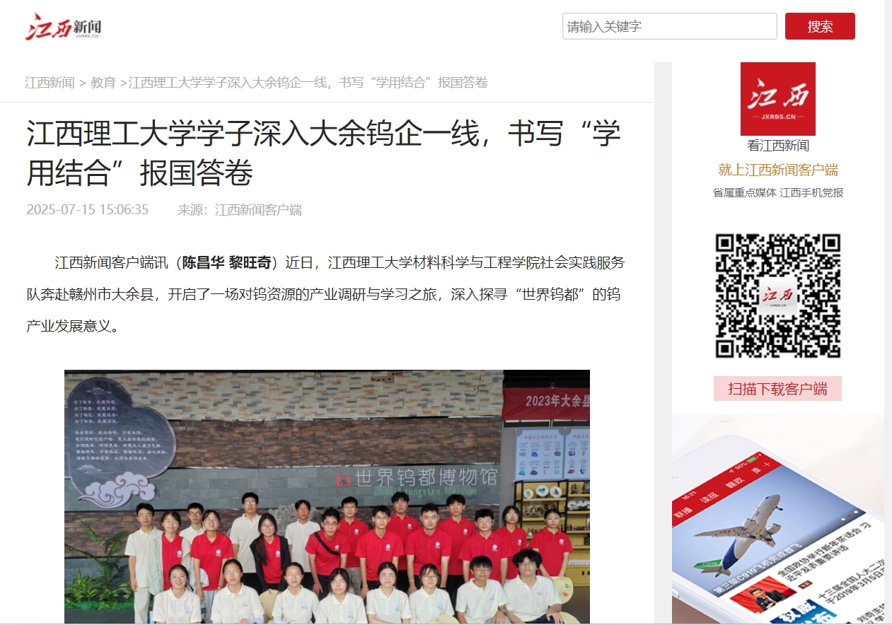 社会实践服务队奔赴赣州市大余县,开启了一场对钨资源的产业调研与学习之旅,深入探寻“世界钨都”的钨产业发展意义。