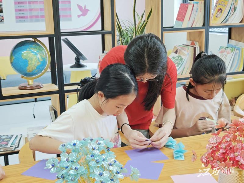 手工制作区域,在队员们的指导下,孩子们巧手翻飞,将彩纸化作象征和平希望的千纸鹤和寓意纯洁美好的百合花。这不仅锻炼了精细动手能力与创造力,更是一次对心灵的耕耘。当孩子们展示自己折叠的千纸鹤和百合花时,脸上洋溢着喜悦与满足。