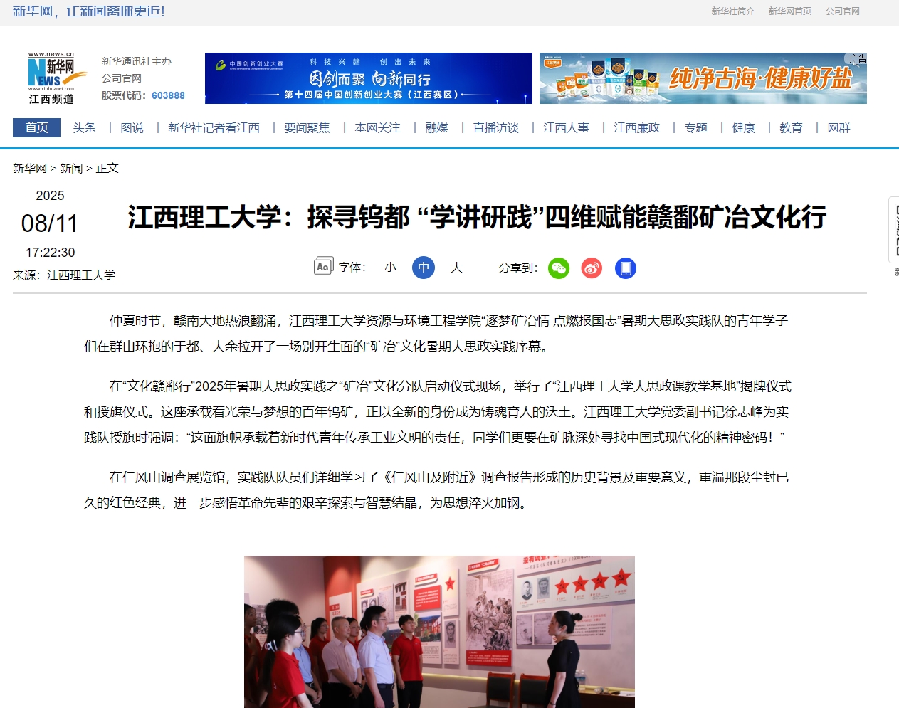 “逐梦矿冶情 点燃报国志”暑期大思政实践队的青年学子们在群山环抱的于都、大余拉开了一场别开生面的“矿冶”文化暑期大思政实践序幕。