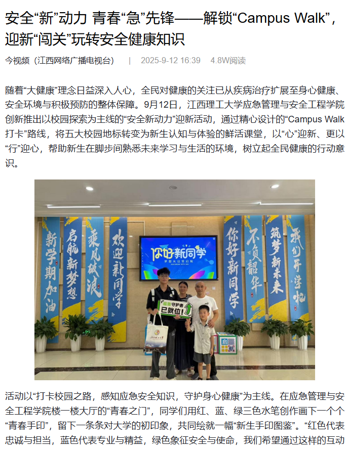 创新推出以校园探索为主线的“安全新动力”迎新活动,通过精心设计的“Campus Walk打卡”路线,将五大校园地标转变为新生认知与体验的鲜活课堂,以“心”迎新、更以“行”迎心,帮助新生在脚步间熟悉未来学习与生活的环境,树立起全民健康的行动意识。