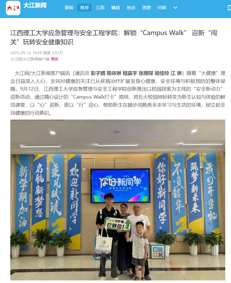 创新推出以校园探索为主线的“安全新动力”迎新活动,通过精心设计的“Campus Walk打卡”路线,将五大校园地标转变为新生认知与体验的鲜活课堂,以“心”迎新、更以“行”迎心,帮助新生在脚步间熟悉未来学习与生活的环境,树立起全民健康的行动意识。